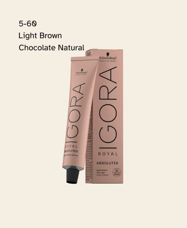 Achieve a rich and captivating light brown with warm chocolate undertones using Schwarzkopf Professional’s Igora Royal 5-60 Light Brown Chocolate Natural. This high-performance permanent hair color delivers vibrant, long-lasting color with exceptional coverage and shine. Its advanced formula provides up to 100% white hair coverage and intense color intensity, making it ideal for those seeking a sophisticated and dimensional light brown shade.