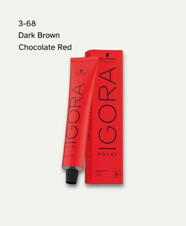 Achieve a rich and captivating dark brown with warm red undertones using Schwarzkopf Professional’s Igora Royal 3-68 Dark Brown Chocolate Red. This high-performance permanent hair color delivers vibrant, long-lasting color with exceptional coverage and shine. Its advanced formula provides up to 100% white hair coverage and intense color intensity, making it ideal for those seeking a sophisticated and dimensional dark brown shade.